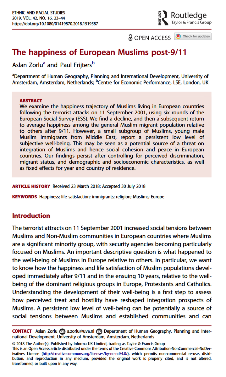 Research published by Ethnic and Racial Studies (@tandfnewsroom) assessed the #happiness levels of European Muslims over a decade.