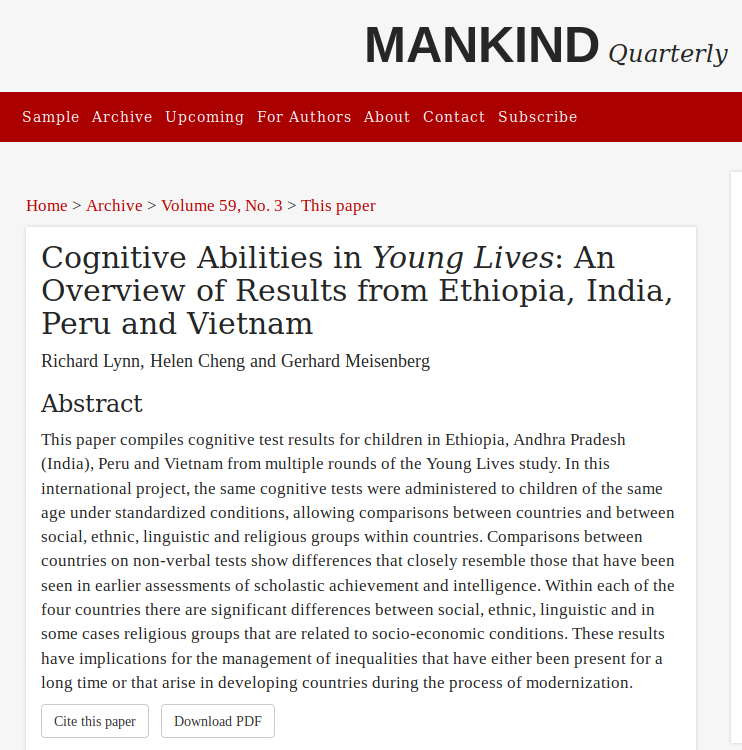 #Muslims generally fare poorly in Western countries both in social status and on IQ tests. What about in other countries? They also fare poorly there. Lynn et al analyses the Young Lives survey data. https://mankindquarterly.org/archive/issue/59-3/7 … ungated pdf: http://emilkirkegaard.dk/en/wp-content/uploads/Lynn-2019-young-lives.pdf …pic.twitter.com/75pjLgTTHV