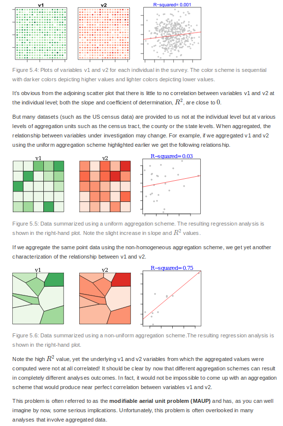 The trouble with aggregation in spatial data. In fact, most social science data is spatial, but the spatial component is ignored. https://mgimond.github.io/Spatial/pitfalls-to-avoid.html …pic.twitter.com/njBauaB3IJ