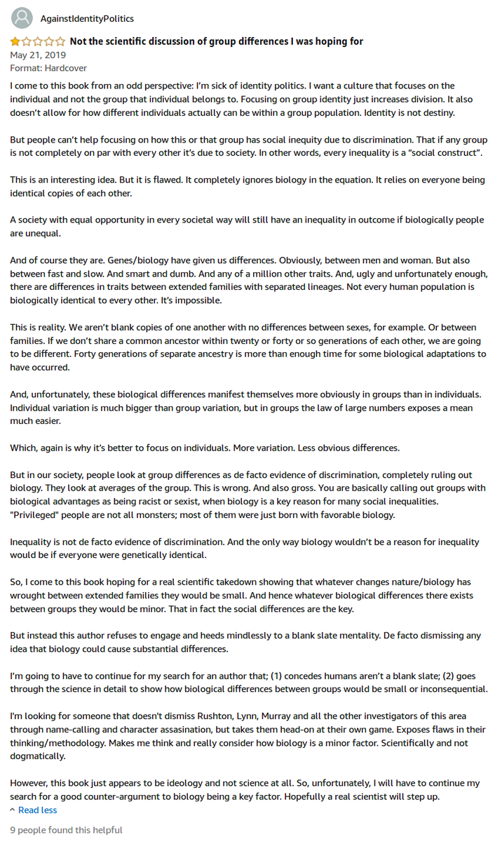 Both book and review are by Guardian. High praise for anti-science book by anti-science people who think they are pro-science. Better review can be found on Amazon. https://www.theguardian.com/books/2019/may/27/superior-the-return-of-race-science-by-angela-saini-book-review … https://www.amazon.com/dp/B07HDRH7J7/ref=docs-os-doi_0#customerReviews …pic.twitter.com/YThvFjBUva
