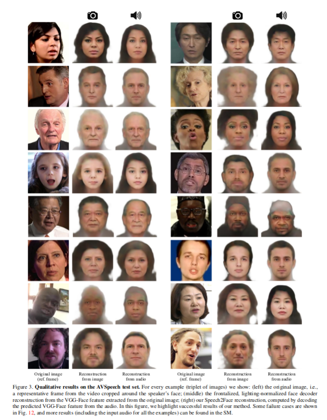 Amazing #machinelearning results. Reconstructing the face from voice recording. Voice recognition is also nearing perfection. All anonymous Youtubers etc. who use their own voices will be doxxed. It's inevitable. Tech basis of perfect police state. https://arxiv.org/abs/1905.09773 pic.twitter.com/F5ZA5VDRGy