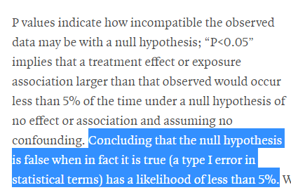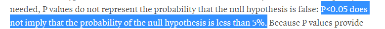... like "of the times you conclude it's false it will actually be true 5% of the time," the "percent chance of being wrong" misunderstanding.