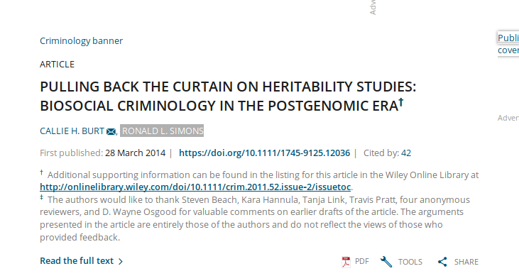 What happened in the 1970s when some criminologists linked crime and intelligence? Bonus: yes, this is the same sociologist Simons who in 2014 still was attacking behavioral genetics. https://openarchive.ki.se/xmlui/handle/10616/41002 …pic.twitter.com/XwoRR6qG8y