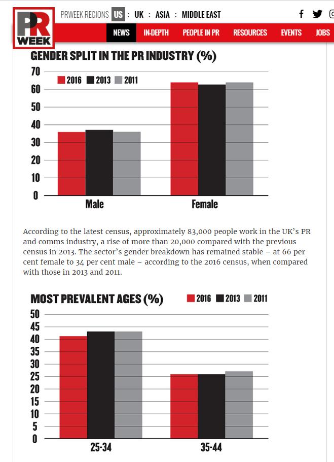 This survey reported in PR Week shows the industry is 65% female and 40% 25-34 (70% 25-44). Dominated by young women: this is how woke capital gains power. pic.twitter.com/DceWh8x09f
