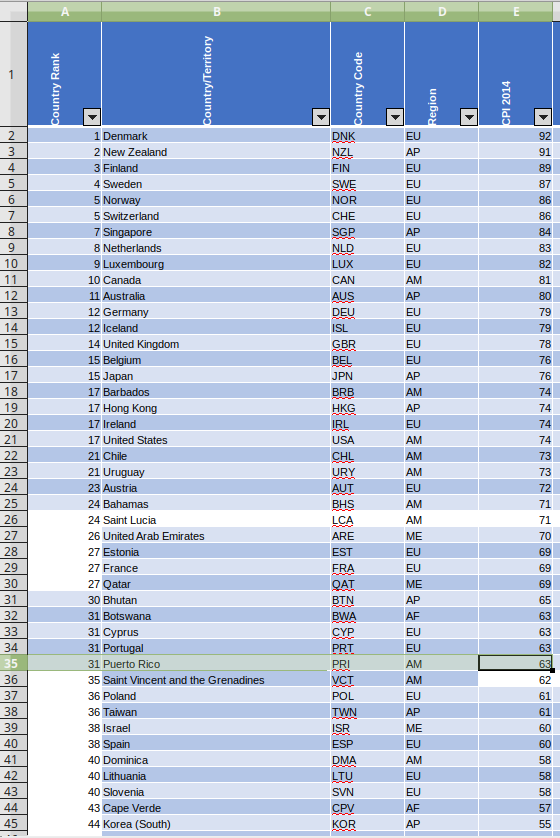 Puerto Rico is not actually very corrupt, so Trump is mostly wrong on that one. https://www.transparency.org/cpi2014 (no later data for this area)pic.twitter.com/u7o8JJr69t
