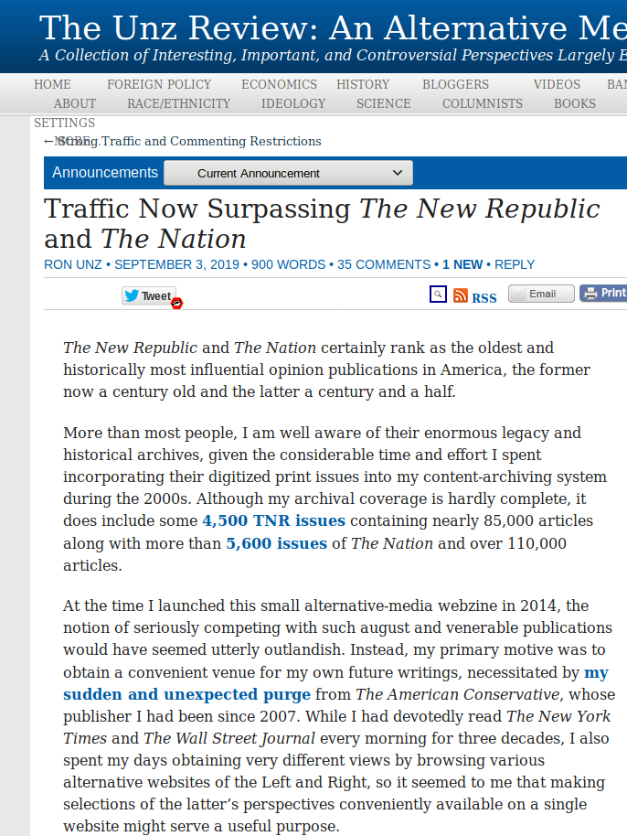 Unz keeps going. When is Unz gonna surpass NYT at this rate? @RonUnz1 http://www.unz.com/announcement/now-surpassing-the-new-republic-and-the-nation/ …pic.twitter.com/4c0tyWXla6