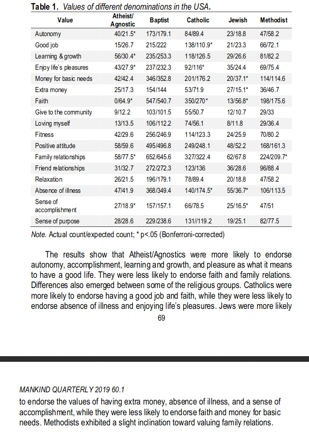 What do atheists value in life? (Odd statistical method!) https://mankindquarterly.org/archive/issue/60-1 …pic.twitter.com/ouZGJjA4Fl