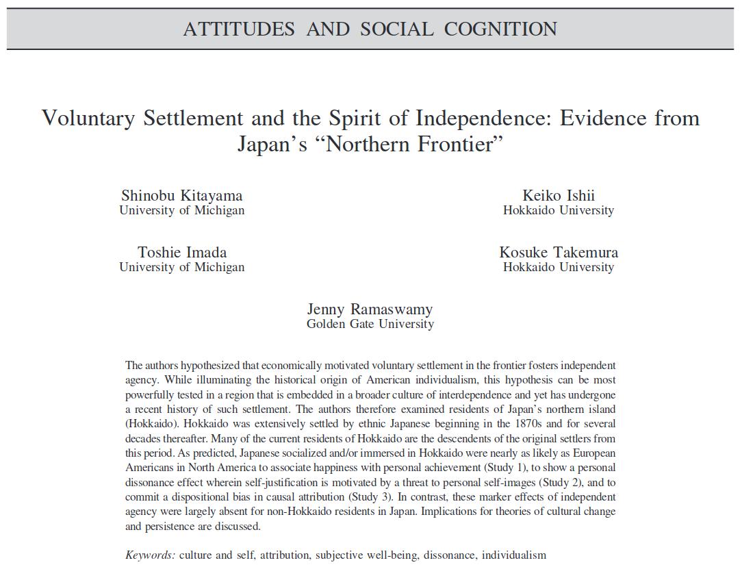 Japanese northern individualism? Good idea for study, but sample sizes are terrible (68, 81, 38). https://pdfs.semanticscholar.org/b157/ab06271c6cf12ed0704dee8fda52811b4424.pdf …pic.twitter.com/O7IgO9SXJk