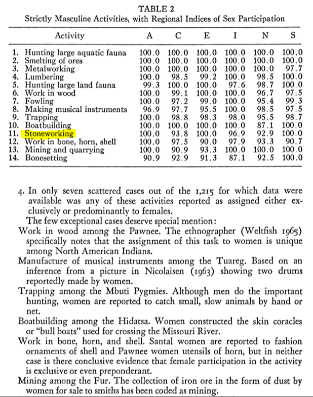 Well there is strong evidence of gender bias in stone tool production among modern societies in the standard cross-cultural sample https://twitter.com/Anthrofuentes/status/1181894801068904454 … pic.twitter.com/5yBKf35USl
