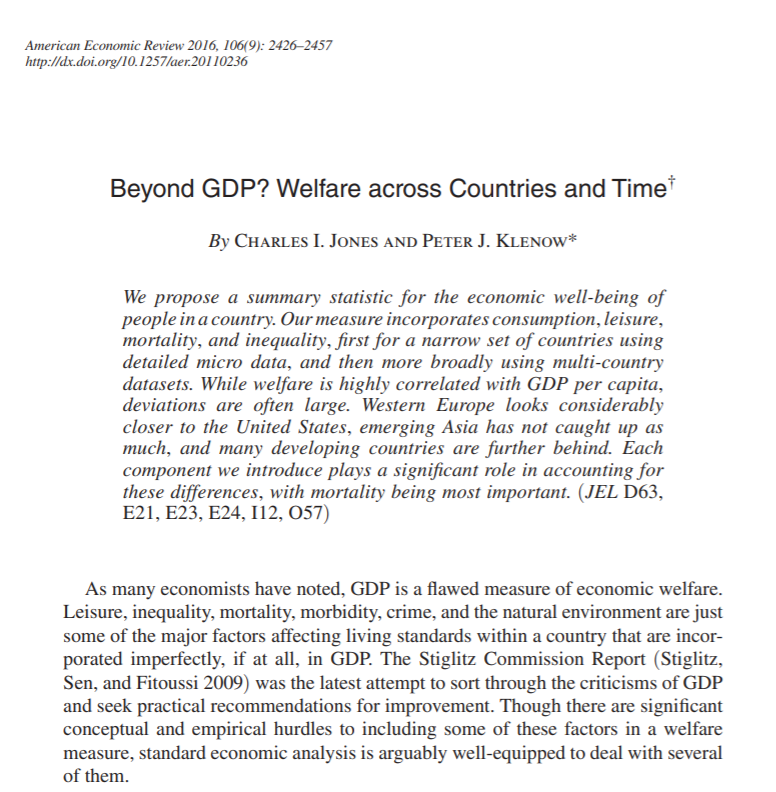 A measure of economic well being across countries The results are in line with the general principle that all good things tend to come together (general factor of "goodness") Here is the correlation with GDP per capita for example Source: http://klenow.com/Jones_Klenow.pdf …pic.twitter.com/3UajClvXuz