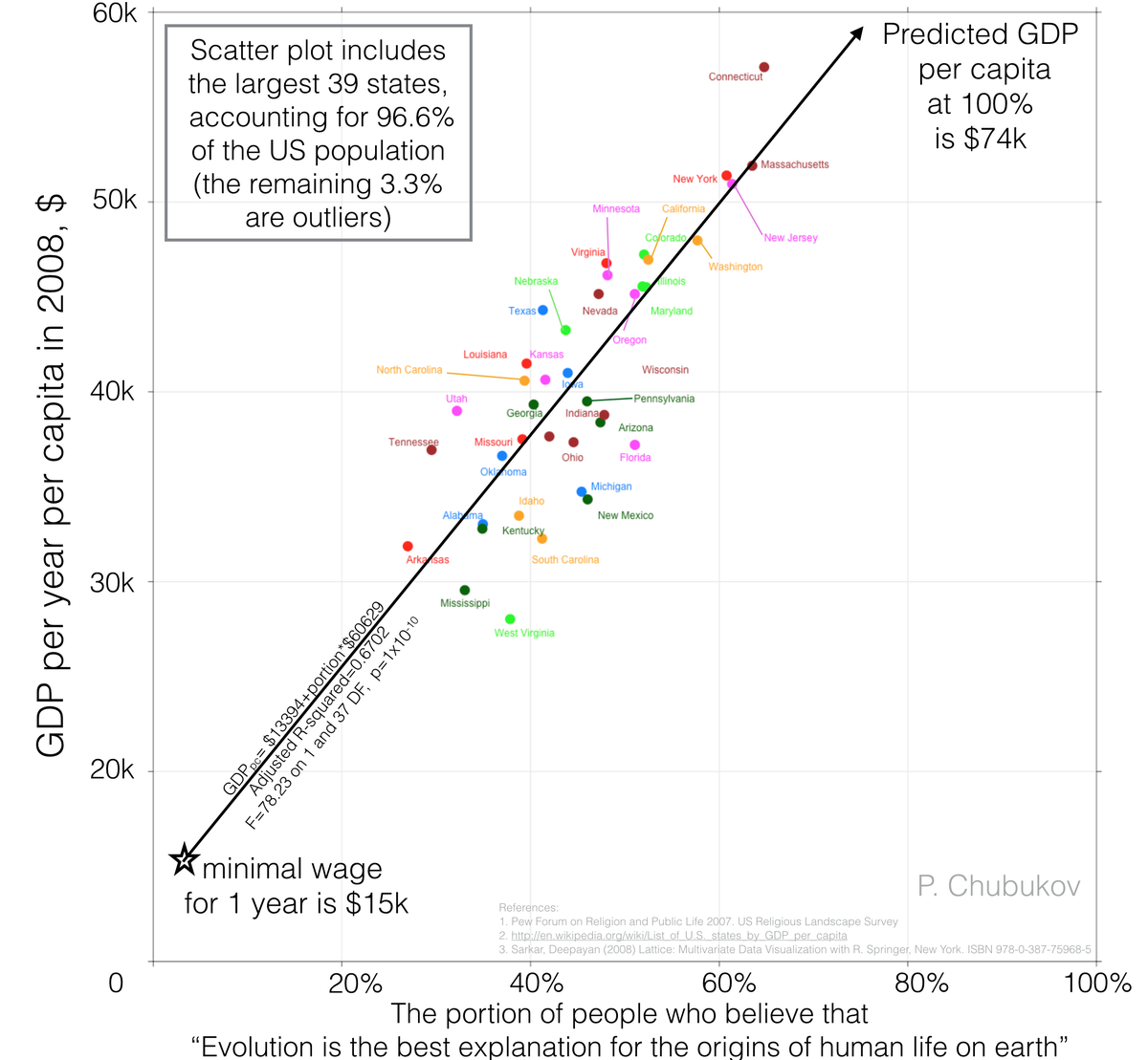 This is curious --> Belief in #evolution vs. GDP per capita in the U.S.: http://www.reddit.com/r/dataisbeautiful/comments/33yobb/oc_belief_in_evolution_predicts_gdp_per_capita/ … #datavizpic.twitter.com/hyG7u5B8oI
