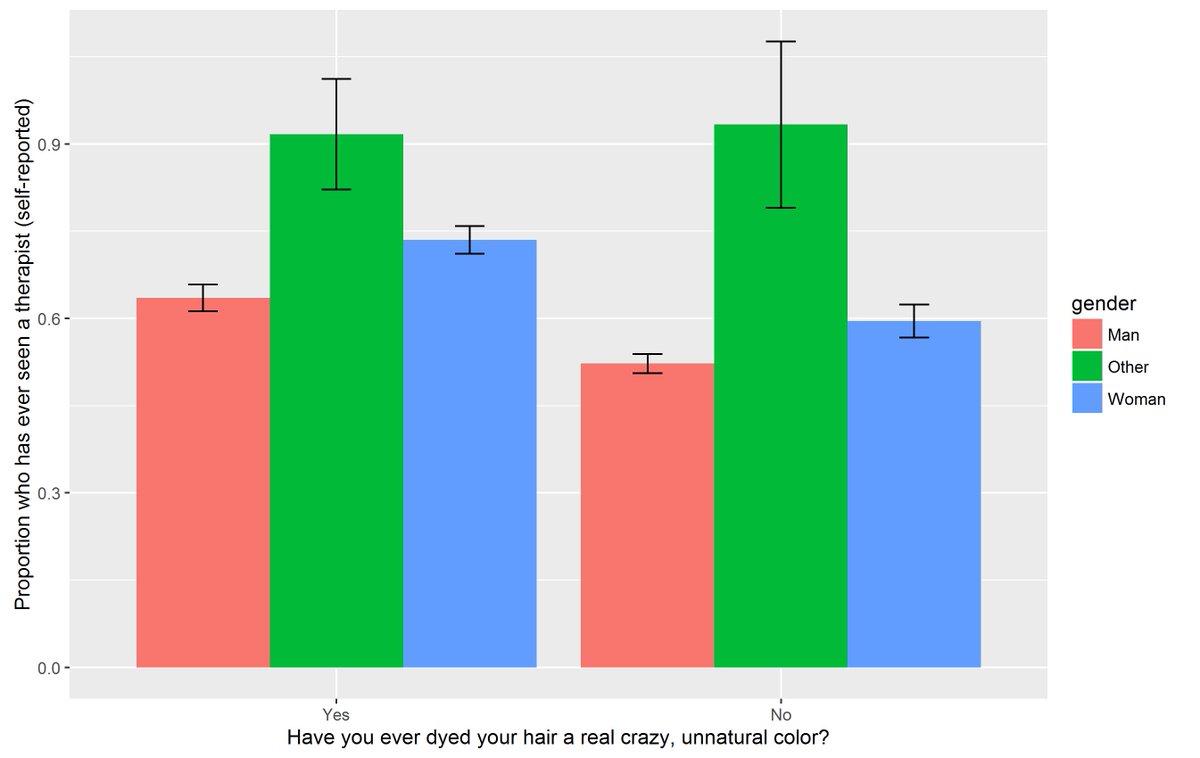 Is crazy hair color a cue of actual crazy as some have suggested? It appears so. N=8k. OKCupid data.pic.twitter.com/yR9fiyU4lM