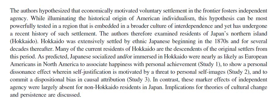 Hokkaido settled by Japanese in mid-1800s. Today they have a different character than Honshu #SelectionEffect