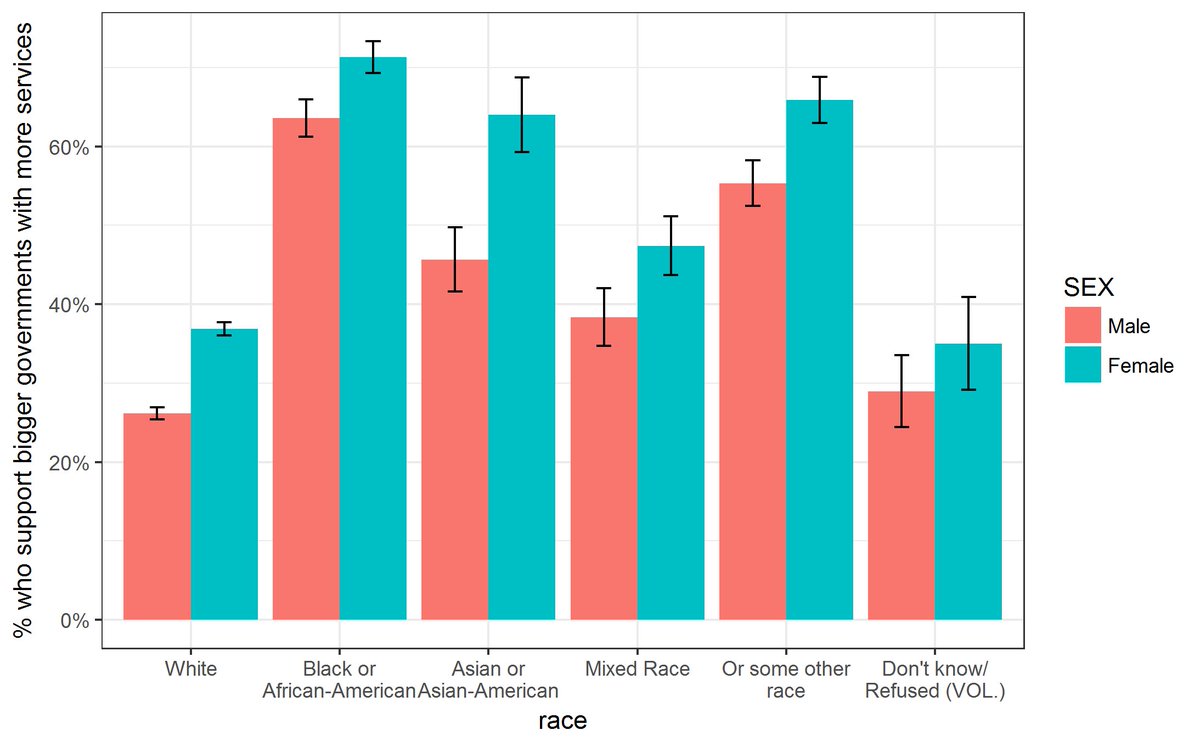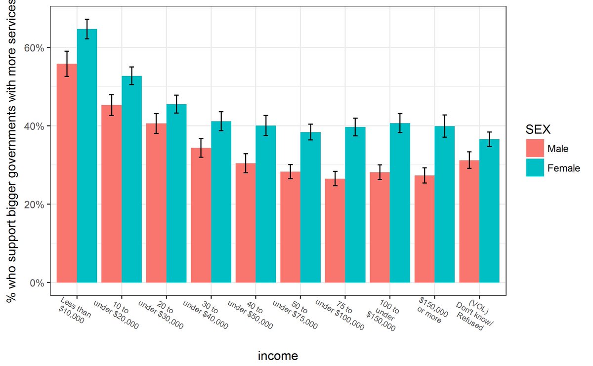 Who wants big govt? Now with 4 plots. Based on @PewReligion RLS dataset. n≈25k.pic.twitter.com/7agD7xb8ay
