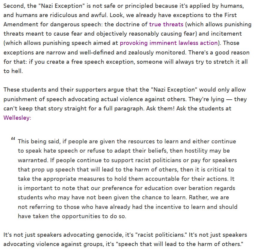 Free speech exceptions must be very narrow indeed. Soviets prevented dissent bc it would stall/slow the revolution. https://www.popehat.com/2017/04/18/the-seductive-appeal-of-the-nazi-exception/ …pic.twitter.com/QkFopRhWMp