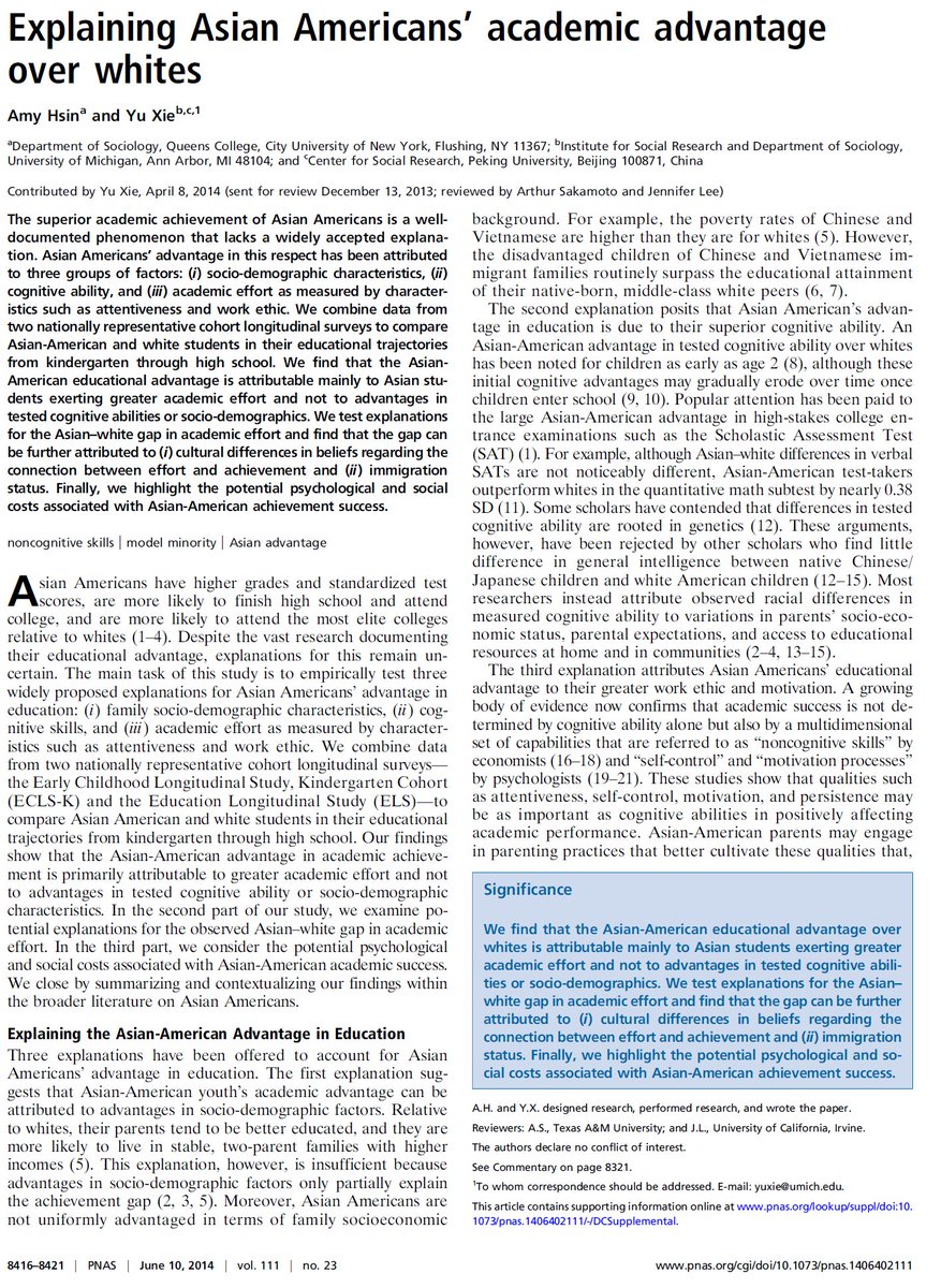 or finding...Asian-American advantage over whites attributable mainly to exerting greater academic effort, not to cognitive abilities or SES pic.twitter.com/CH8r1c66bG