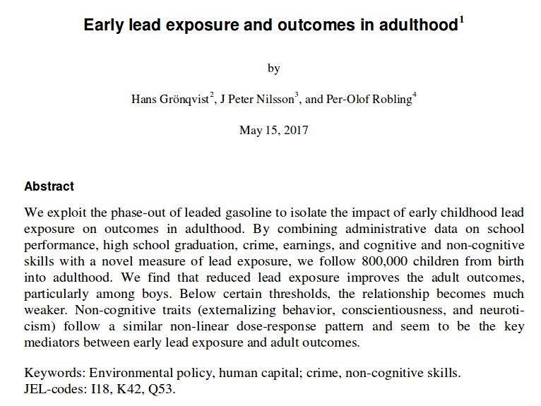 Interesting and very large study on lead exposure. http://www.ifau.se/en/Press/Abstracts/early-lead-exposure-and-outcomes-in-adulthood/ …pic.twitter.com/8FKkJQfxGQ