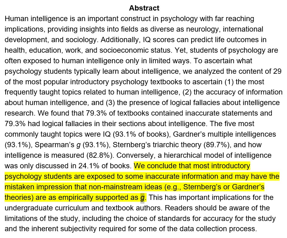 Most intro psych textbooks contain factual errors and logical fallacies in their coverage of intelligence https://drive.google.com/file/d/0B3c4TxciNeJZOTl3clpiX0JKckk/view … *Correctedpic.twitter.com/A1Zgou2GeP