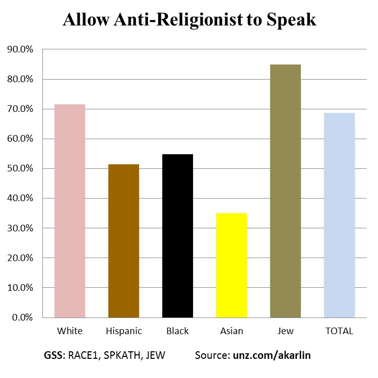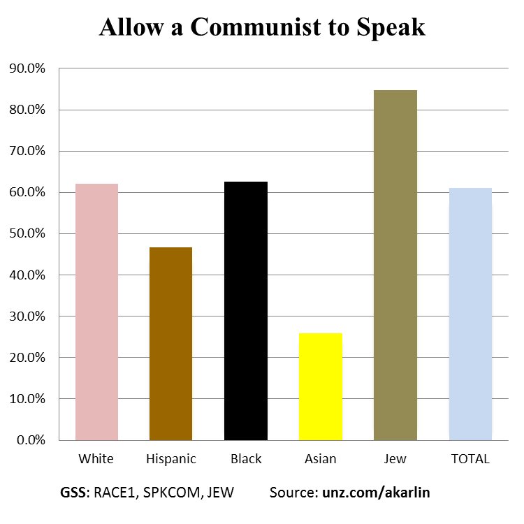 Whites and Jews like free speech, and Asians don't like it. Not the usual clear IQ hierarchy! http://www.unz.com/akarlin/future-for-aclu-children/ …pic.twitter.com/l9pQ2NLGz8