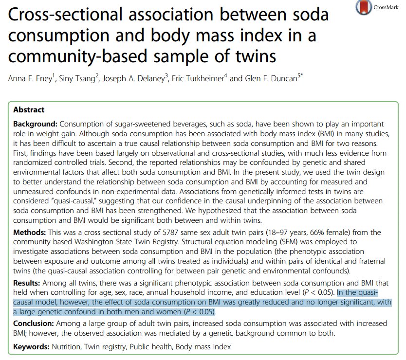 5th law wins again: every phenotypic relationship is genetically confounded. https://nutritionj.biomedcentral.com/articles/10.1186/s12937-017-0269-y …pic.twitter.com/D6bccRflYp