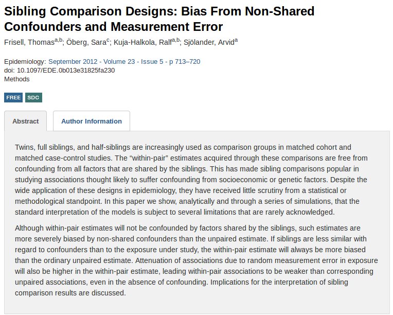 Sibling comparisons: how complicated than you thought. http://journals.lww.com/epidem/Abstract/2012/09000/Sibling_Comparison_Designs__Bias_From_Non_Shared.11.aspx …pic.twitter.com/xfAgmDSTS5