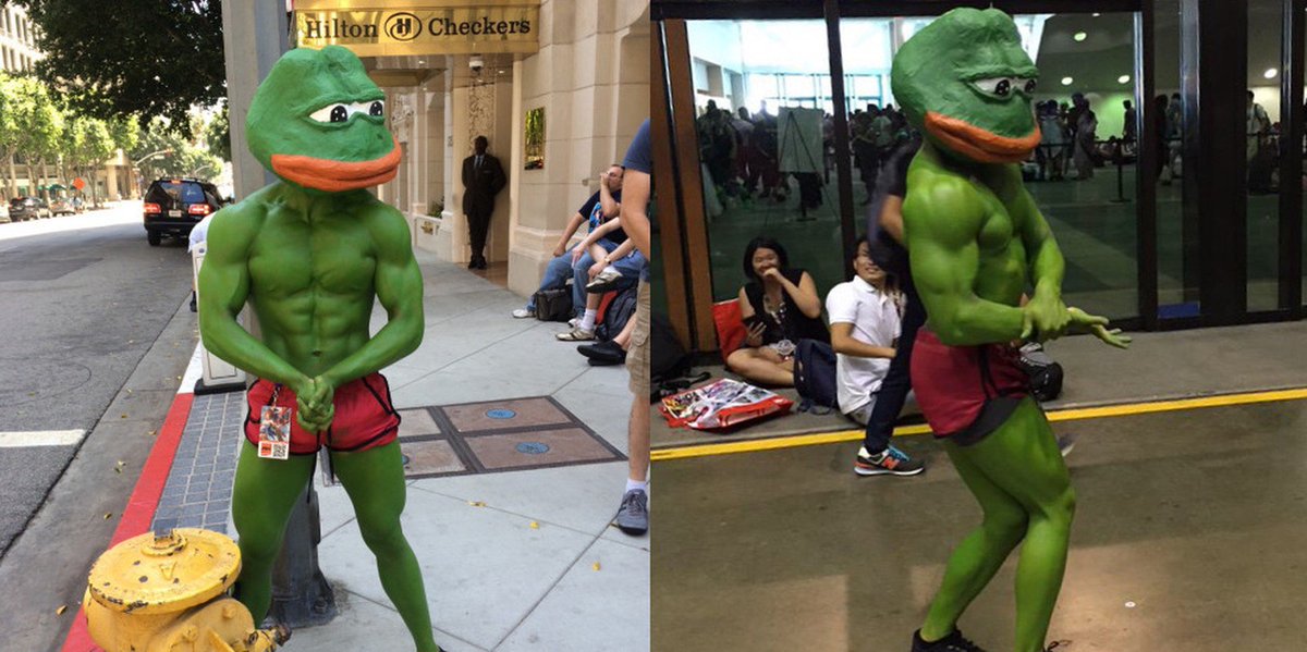 Real life strong pepe. https://www.dailydot.com/unclick/pepe-meme-cosplayer/ …pic.twitter.com/UpSszPf9Kg