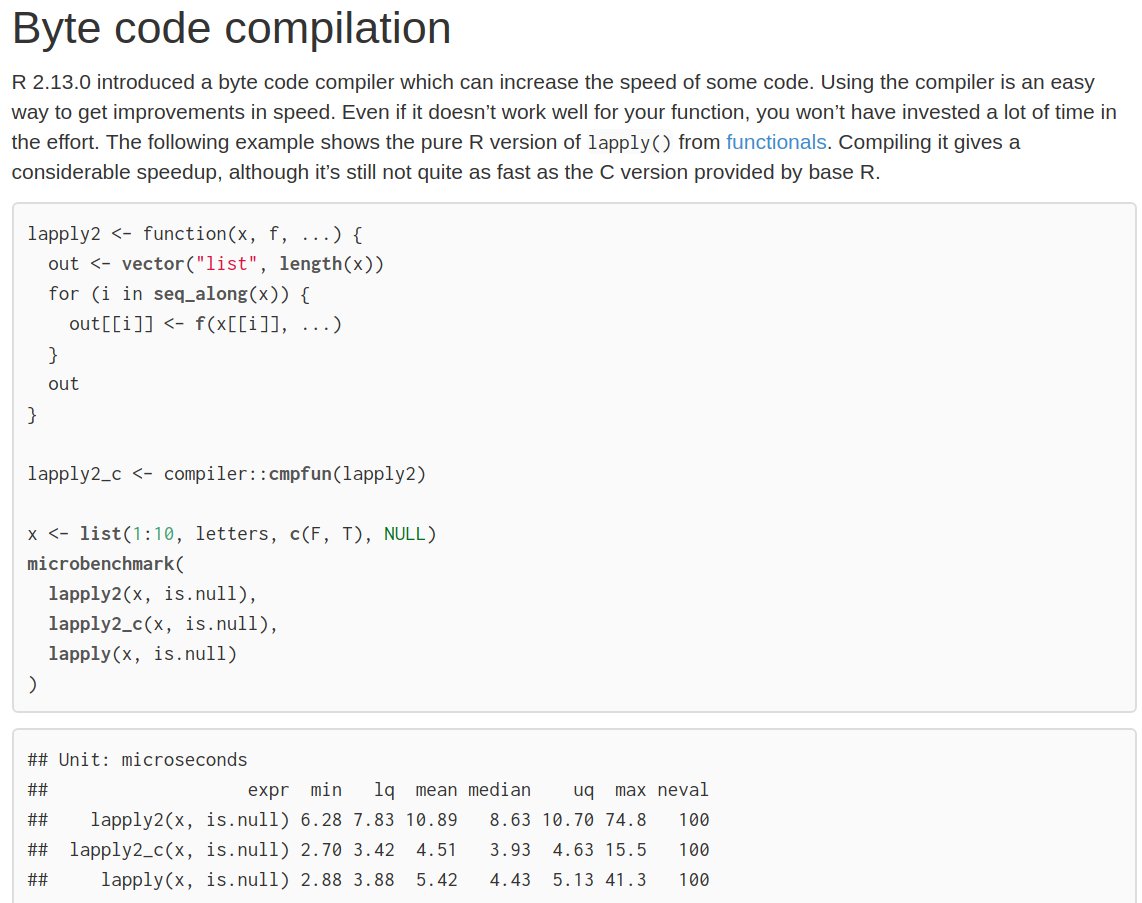 Actually, according to these numbers, the bytecode compiled custom lapply is faster than base lapply (!?) http://adv-r.had.co.nz/Profiling.html #rstatspic.twitter.com/Opoqu5XPkt
