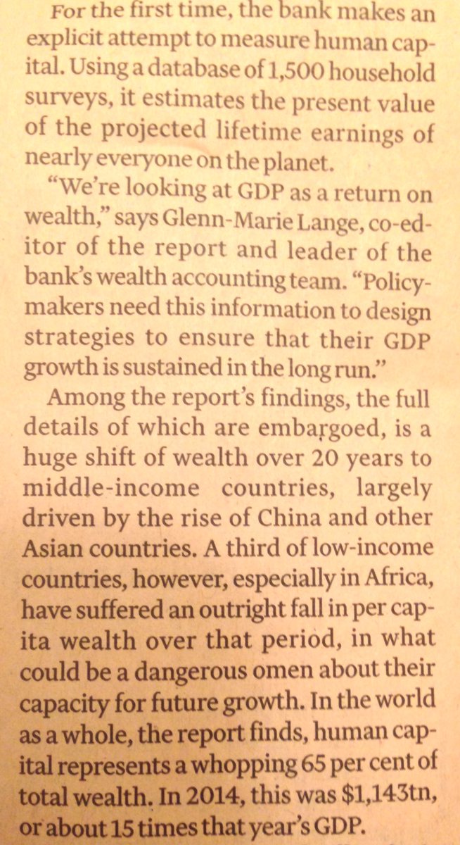 In the world as a whole, human capital represents a whopping 65% of total wealth. In 2014, this was $1,143tn, or about 15 times that year’s GDP http://on.ft.com/2qvcAO6