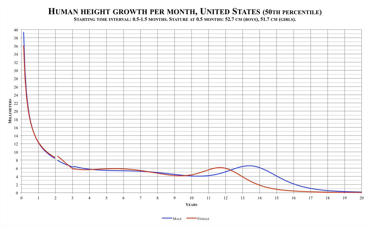 Sex difference in height growth. Lynn's developmental model is that brain size and thus intelligence follows the same pattern, but that many good datasets stop around age 16 so we miss the residual male growth up to age 19 while female is mostly done at 16 https://en.wikipedia.org/wiki/Human_height#/media/File:Human_height_growth_per_month,_United_States.png …pic.twitter.com/ukvYHsxNlS