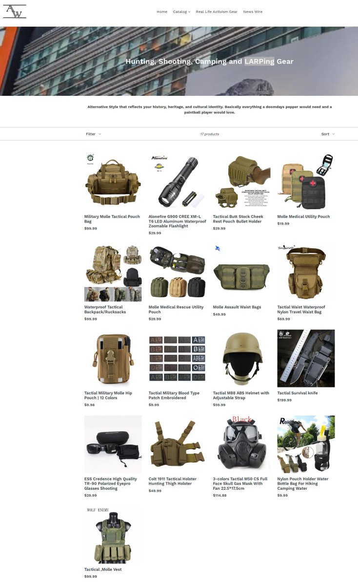 Alt-wear sells LARPing gear, which is actually a bunch of military gear.