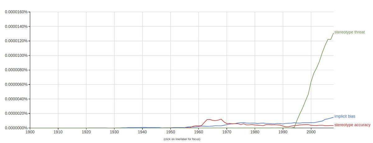 Just for fun. :) https://books.google.com/ngrams/graph?content=implicit+bias%2Cstereotype+accuracy%2Cstereotype+threat&year_start=1900&year_end=2008&corpus=15&smoothing=3&share=&direct_url=t1%3B%2Cimplicit%20bias%3B%2Cc0%3B.t1%3B%2Cstereotype%20accuracy%3B%2Cc0%3B.t1%3B%2Cstereotype%20threat%3B%2Cc0 …pic.twitter.com/xdRs89XTQZ