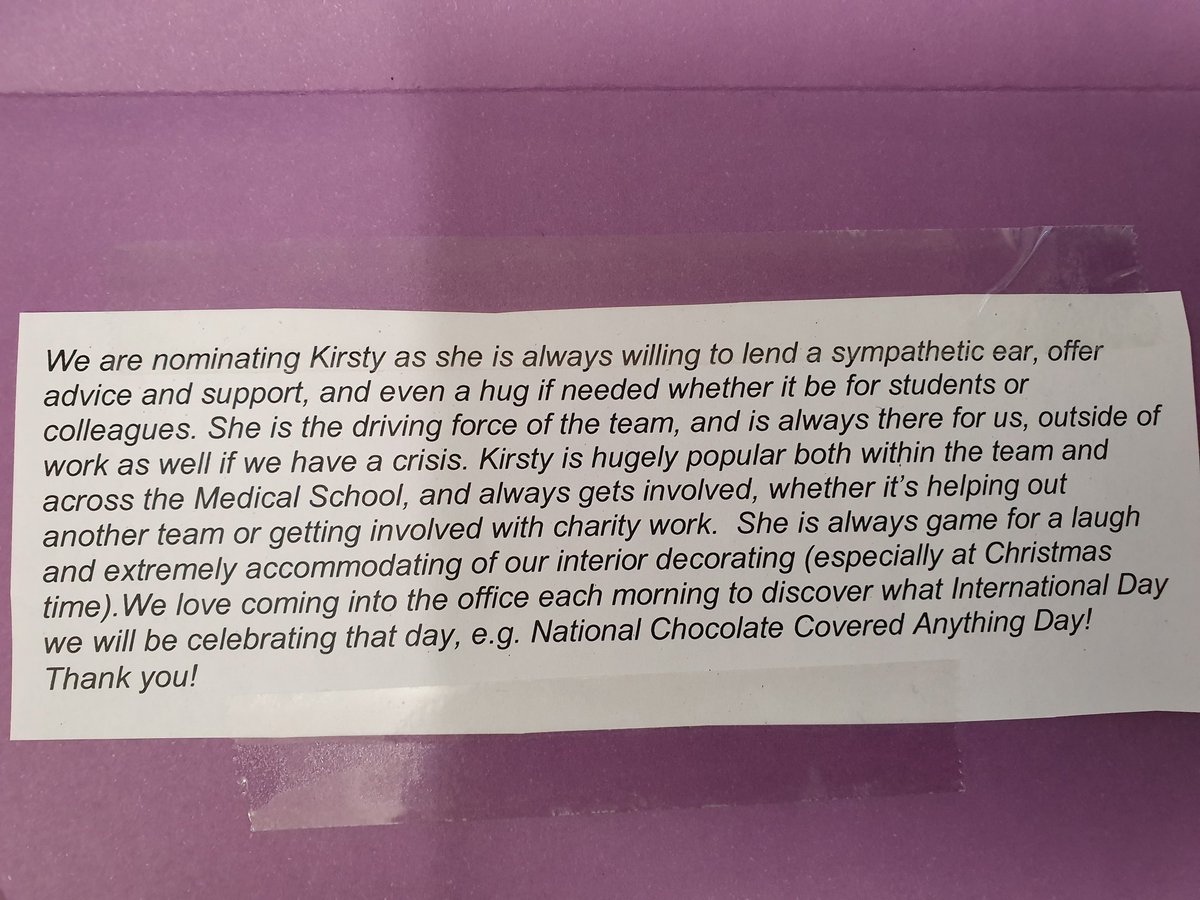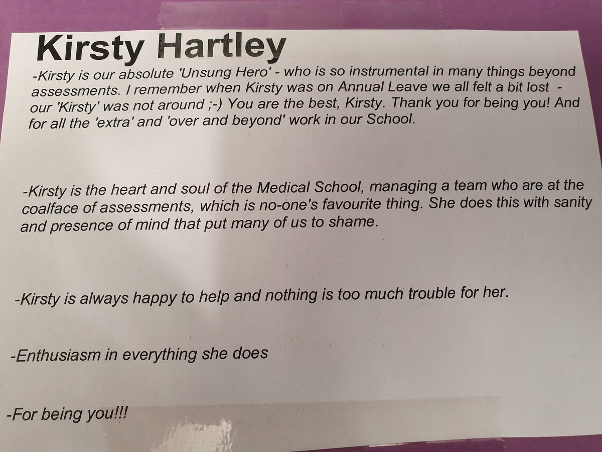I was too overwhelmed at yesterday's Christmas staff development event to fully absorb the lovely things submitted about me for the Unsung Hero nomination part of the session. I nominated several colleagues but never expected to receive such fabulous comments back!pic.twitter.com/rpssdVthUd