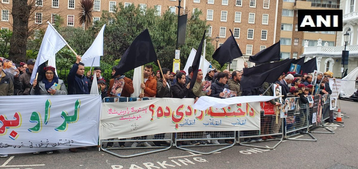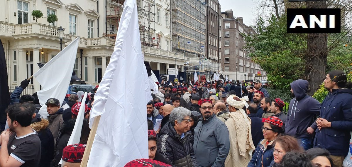 London, United Kingdom: A large number of Pashtuns, living in UK and Europe, gathered outside the Pakistan embassy in London yesterday to protest against the arrest of Manzoor Pashteen, a human rights activist and founder of Pashtun Tahafuz Movement (PTM).pic.twitter.com/XUzkSYy1LB