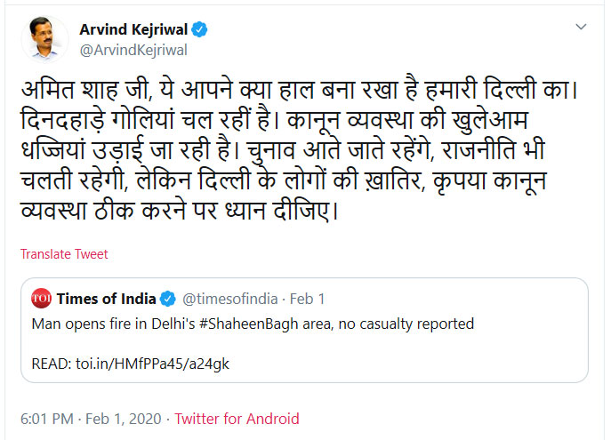 झूठ: केजरीवाल का आरोप भाजपाई गुंडा शाहीन बाग़ में गोलियां चला रहा