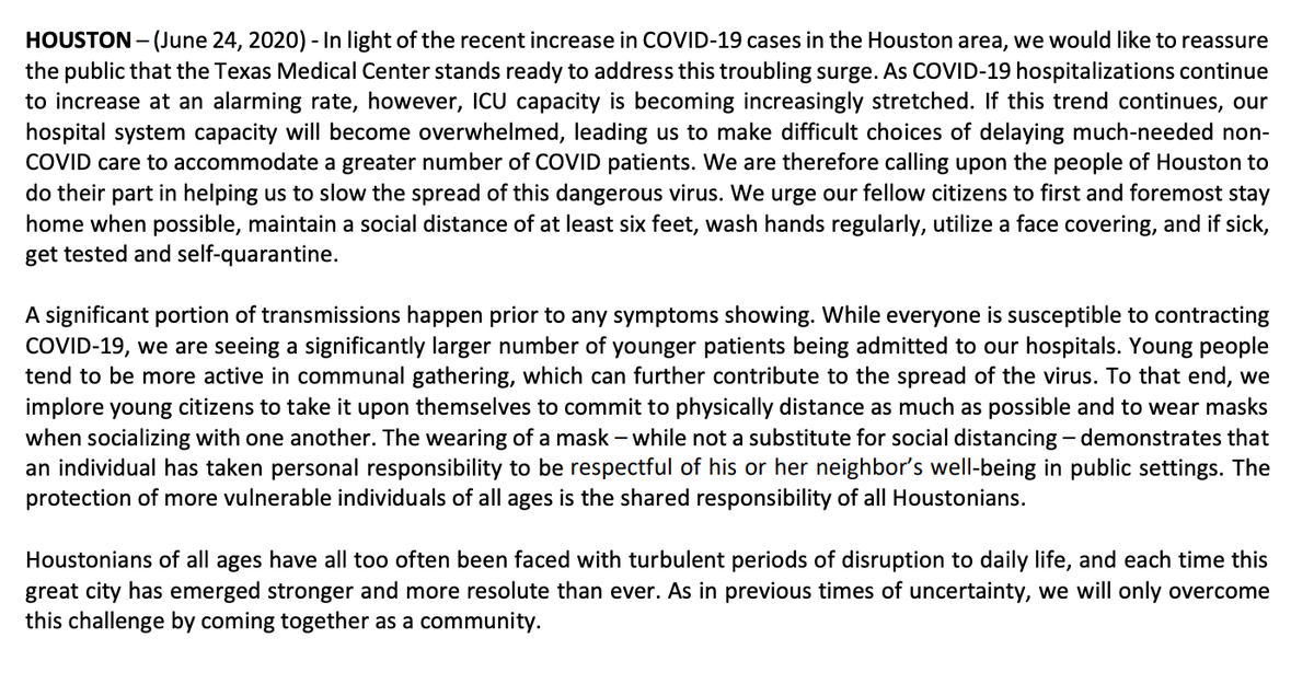 Dr. Boom says a letter @TXMedCenter CEOs released yesterday warning the system could be overwhelmed "unintentionally sounded an alarm bell too loudly," prompting today's news conference to assuage concerns. Here's that letter: pic.twitter.com/kmkBLH9a1p