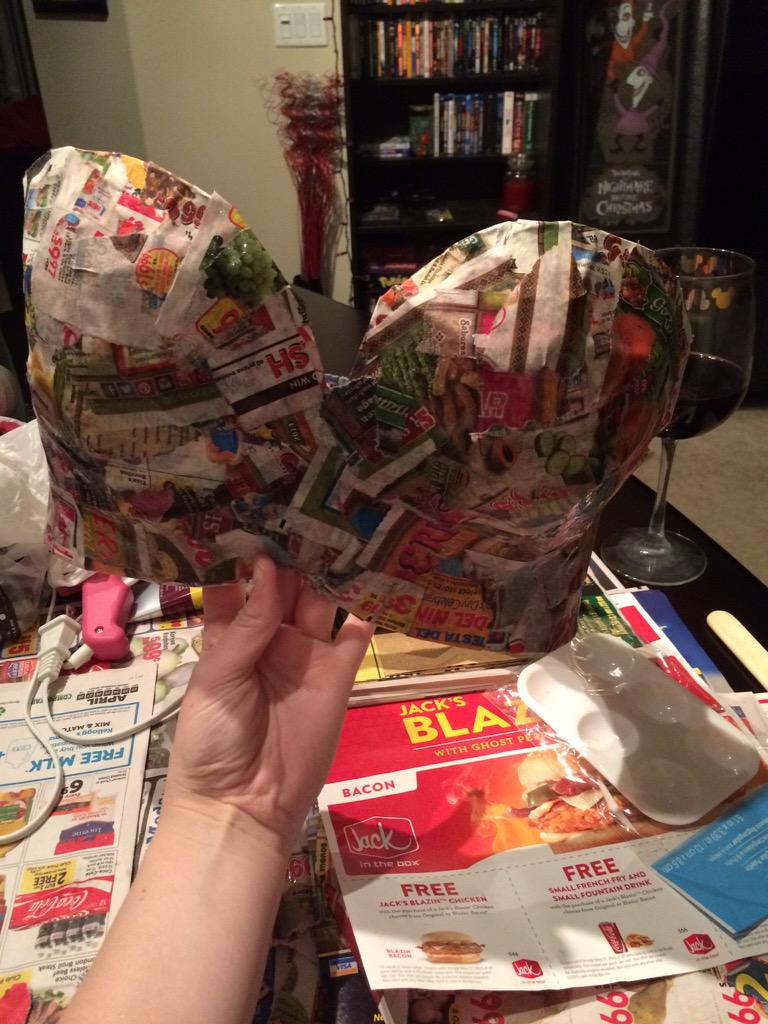 My Sylvanas cosplay is progressing rather slowly. Paper mâché everywhere. #blizzcon2015pic.twitter.com/RabOrm7Q1D