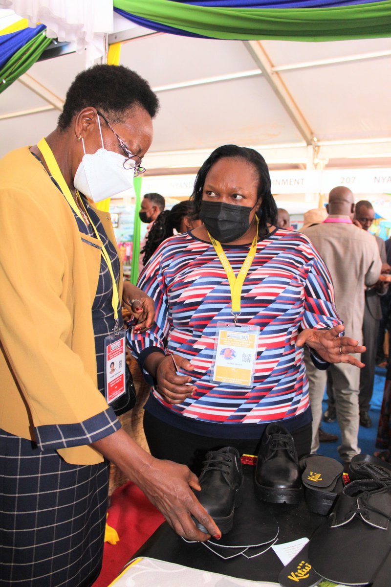 The National Gender and Equality Commission Chairperson Dr. Joyce Mutinda (on the left) earlier today when she visited Kitui's stand for the leather products at the ongoing Devolution conference in Makueni. With her is Kitui CECM for Trade, Investments & Cooperative.pic.twitter.com/4HFridJ2qC