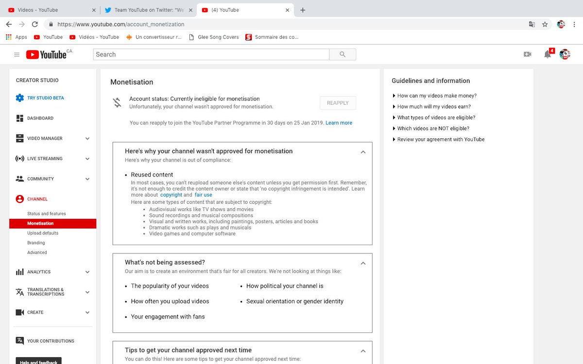 @YTCreators I post videos with my own content and also special features, you didn’t approve to monetise my channel because of them (copyrights). So I can’t even earn money for my own content ???