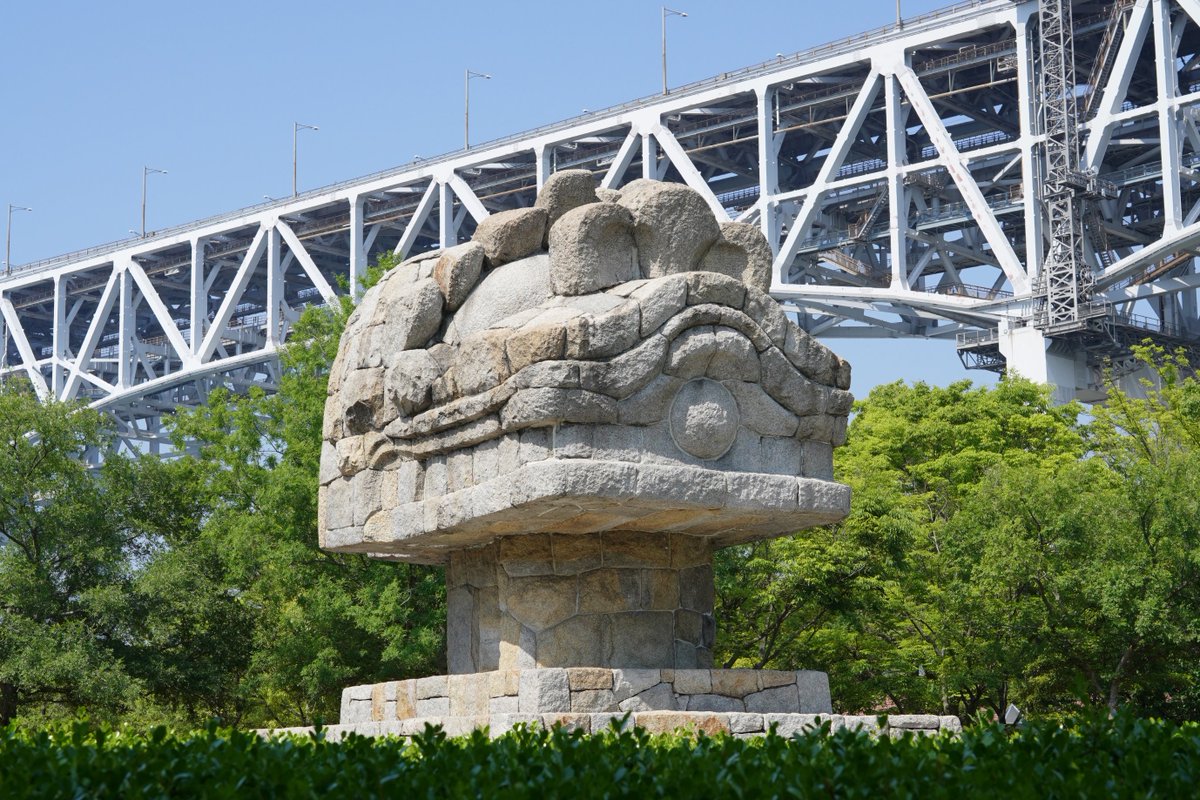瀬戸大橋の袂にある『どだま獅子』。四国は古くから獅子舞の祭りが盛んで、讃岐の方言で獅子頭を意味します。流政之氏が、瀬戸大橋の守り神となることを願い、橋脚となった島々をはじめ瀬戸内の石を集めて制作されたものです。 彫刻家 流政之 - Sculptor Masayuki Nagare https://yousakana.jp/nagare/ pic.twitter.com/vPfqCNlHcX