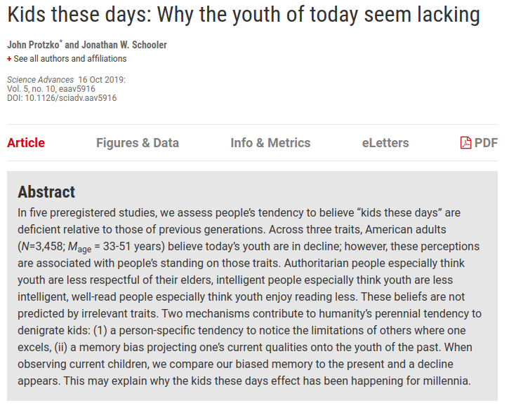 Science confirms kids are fine, you're just kind of an asshole. https://advances.sciencemag.org/content/5/10/eaav5916 …pic.twitter.com/g4igQQISp5