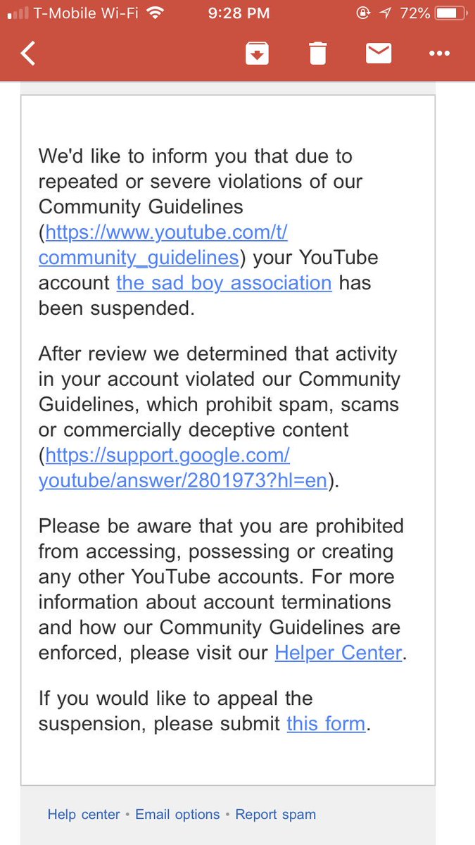 @TeamYouTube hey, my channel got terminated for spam, scams, or commercially deceptive content? I have never scammed, spammed, or deceived anyone on my channel, any explanation for this? I was overjoyed by the fact that I hit 100k subscribers a few days ago, now I’m heartbrokenpic.twitter.com/V1Ieljrc70
