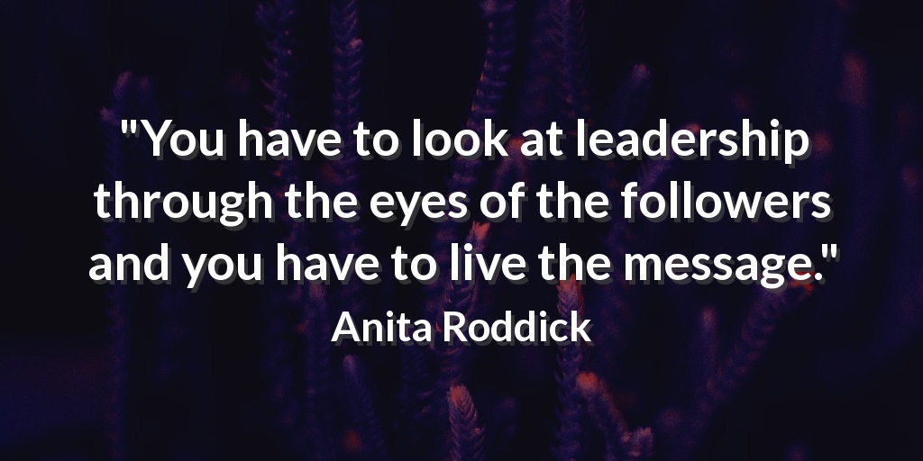 "You have to look at leadership through the eyes of the followers and you have to live the message." Anita Roddick