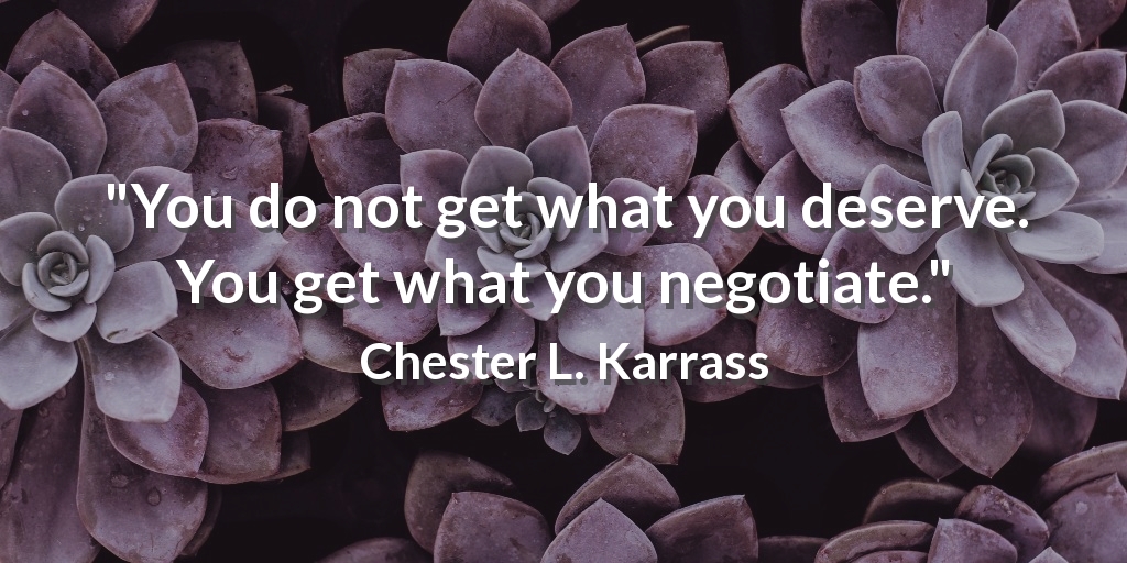"You do not get what you deserve. You get what you negotiate." Chester L. Karrass