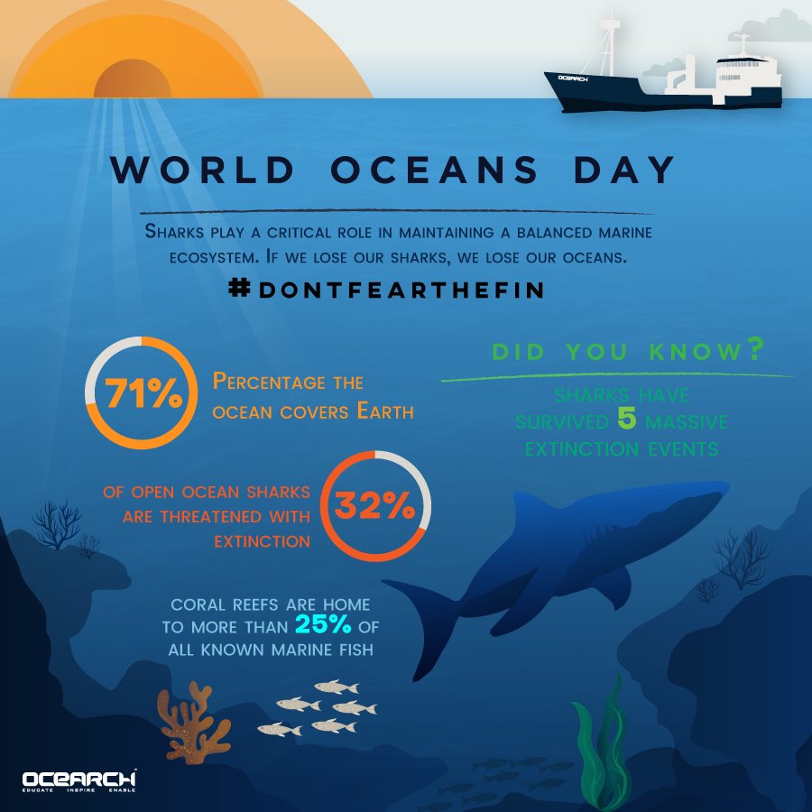 #WorldOceansDay Learn the facts about#Sharks & the critical role they play in our ecosystem#DontFearTheFin - We have just 1 Planetpic.twitter.com/BMcHuN8qVJ
