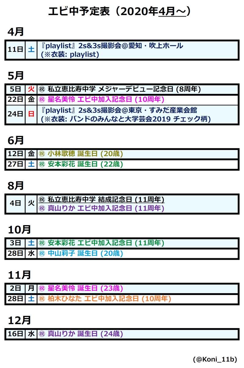 #ebichu#エビ中#エビ中予定表2020pic.twitter.com/SsD1OGzDUf