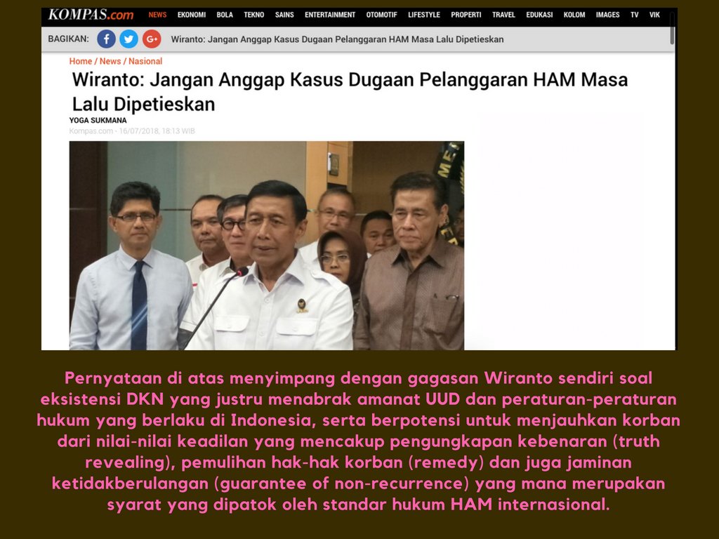 @wiranto1947 untuk menyelesaikan permasalahan pelanggaran HAM berat masa lalu dengan cara musyawarah mufakat tanpa proses peradilan adalah tidak tepat. Sebuah utas, undangan bagi media