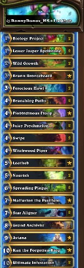 Deck is just silly. After trying out several builds in wild, I caved and played the best deck in the format. Credit to the original build from @IntoTheWildHS from @DannyDonuts_HS . The only change I made was an Ancient Brewmaster for a Loatheb as it's a better standalone card.pic.twitter.com/veq4uLNTm1