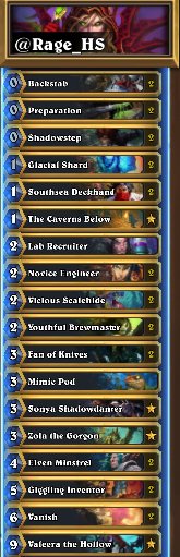 I really tried to make a push on NA, but ran outta time since I'm heading to San Diego to watch my Lakers play (Hype). Deck is awesome though, and credit to @Rage_HS for the double backstab idea. I played this almost exclusively from rank 2.5K Legendpic.twitter.com/l9G4luy8Xk