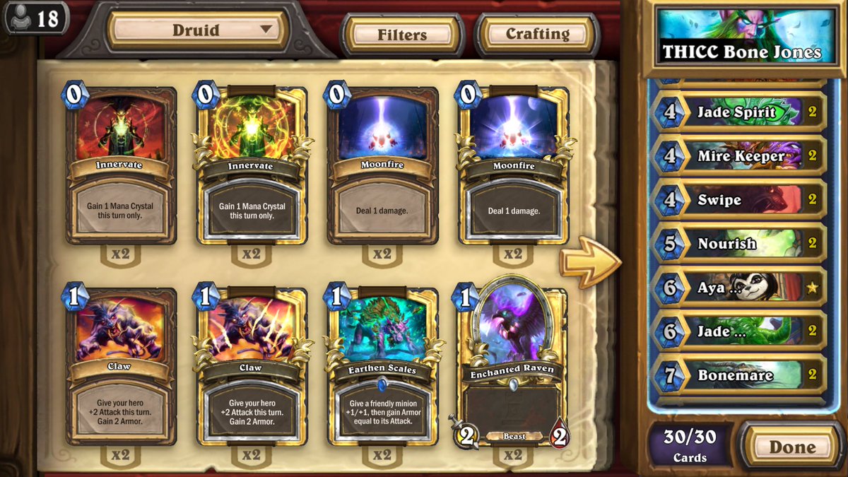 Just hit legend Bone Jones Jade Druid. Climbed to 1 w/ Mage then finished with Druid. Mage decklist from @TopDeckKings showpic.twitter.com/jlWsZY2WPn