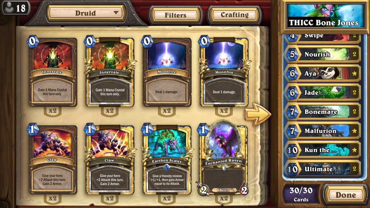 Just went 6-0 with your Bone Jones Druid list. Going Kun into Fire Fly into Bonemare is such sick value.